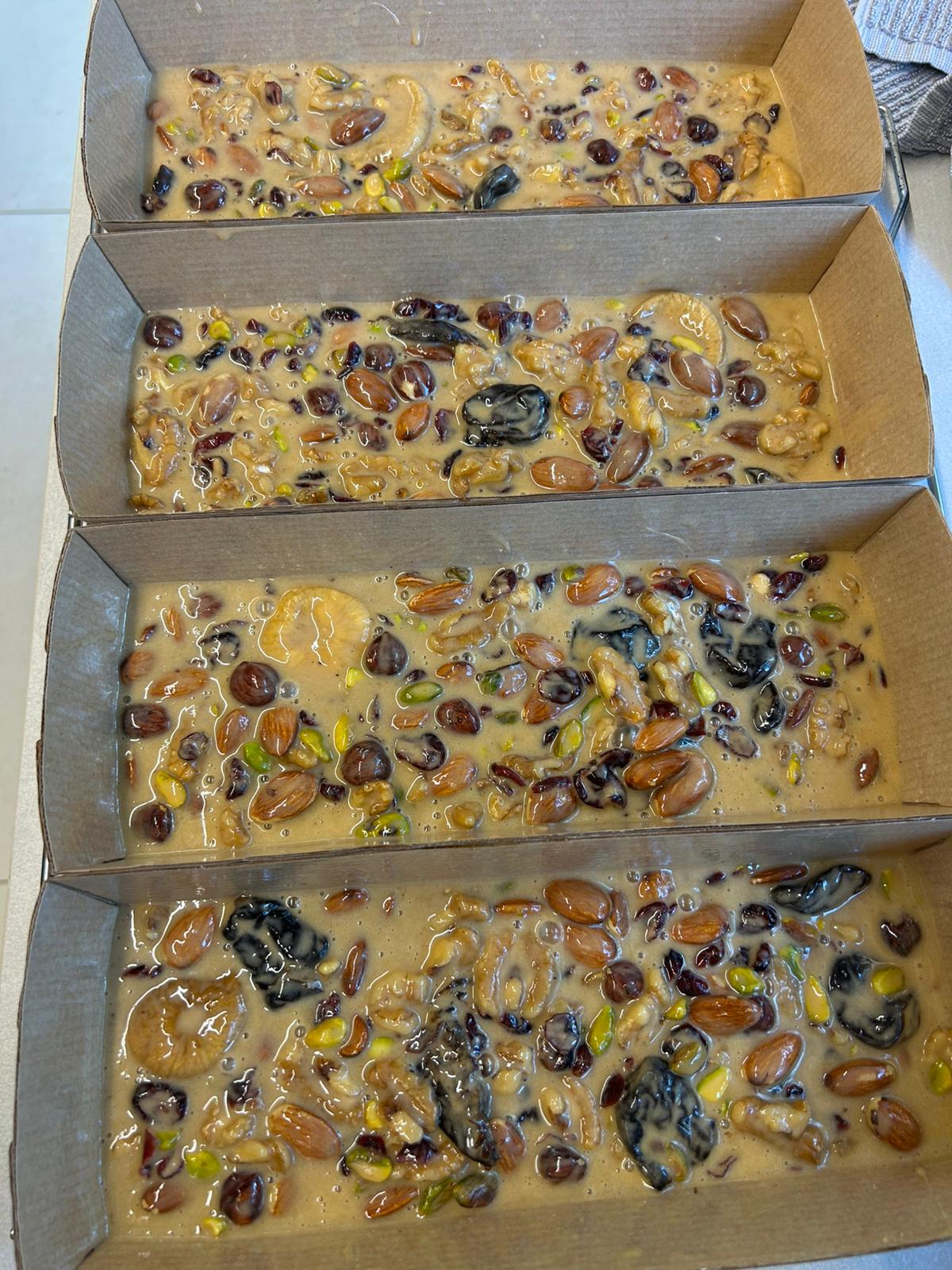 עם אגוזי מלך, אגוזי לוז, פיסטוקים, שקדים ופירות יבשים מעולים