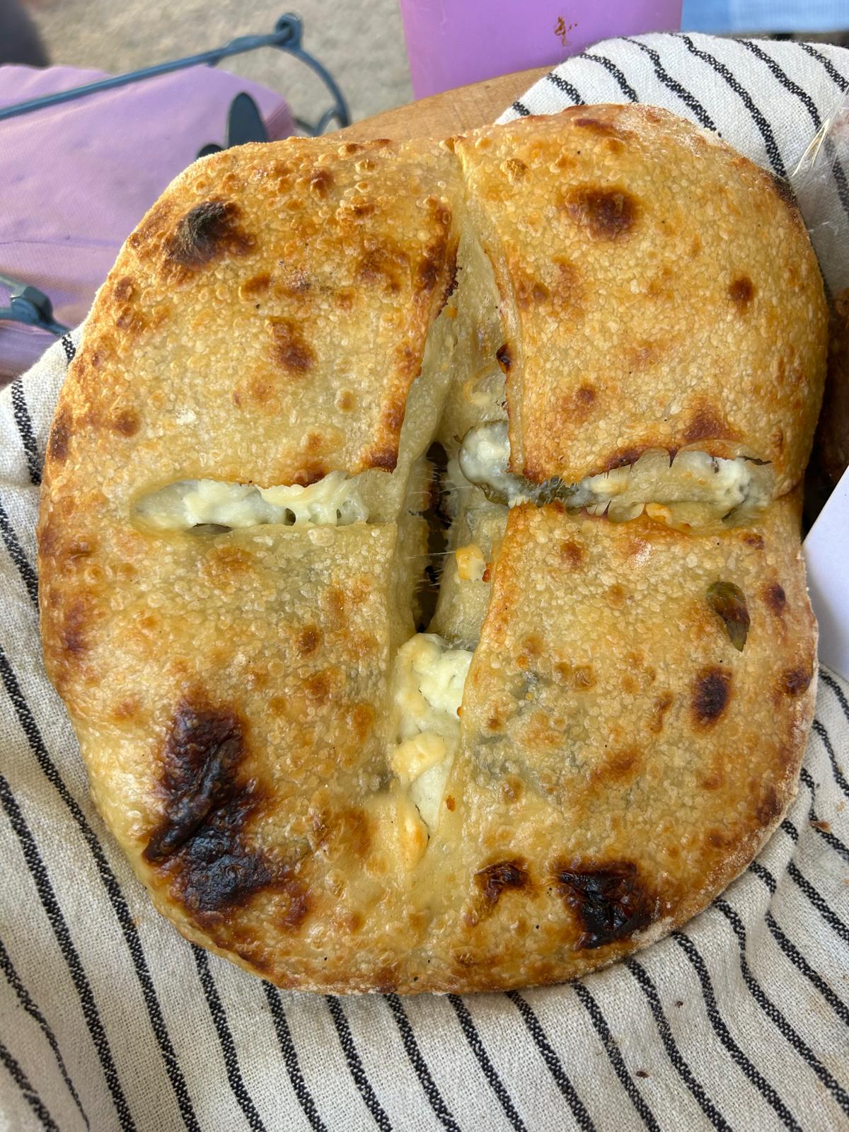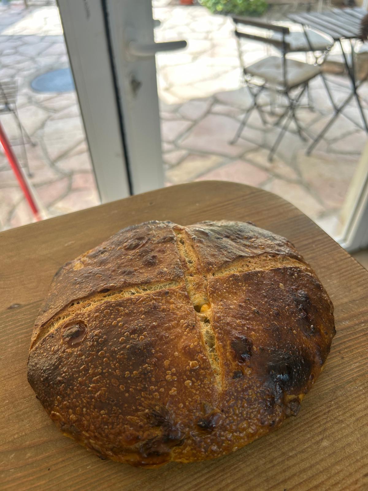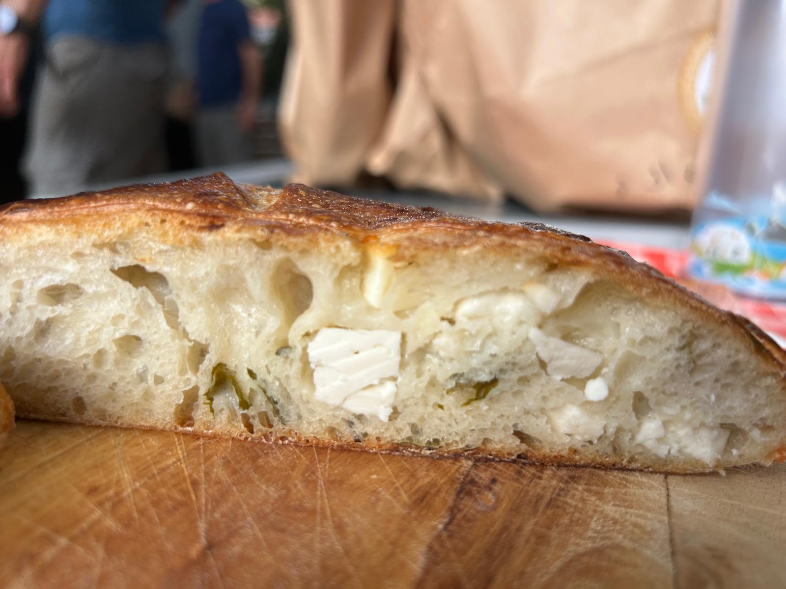 בהשראת לחם עם נענע שפגשתי בקפריסין לחם מחמצת שטוח מקמח מניטובה עם הרבה נענע ופטה כבשים